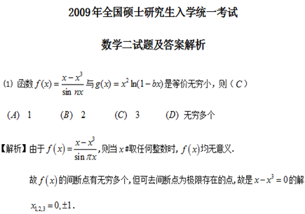 2009年全国硕士研究生入学统一考试数学二试题及答案解析