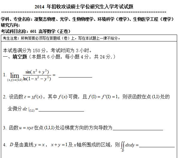 聚英考研信息网整理了2014年暨南大学601高等数学考研真题,部分内容如下: