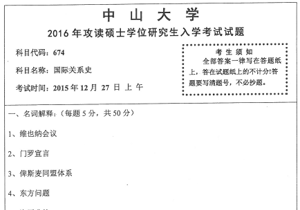 聚英考研信息网整理了2016年中山大学674国际关系史攻读硕士学位研究生入学考试真题,部分内容如下:
