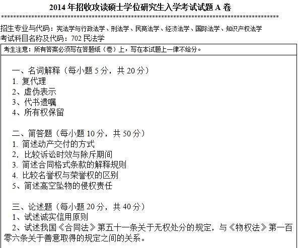 聚英考研信息网整理了2014年暨南大学702民法学考研真题,部分内容如下: