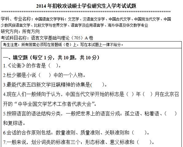 2014年暨南大学705语言文学基础与理论考研真题