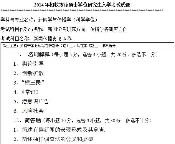 聚英考研信息网整理了2014年暨南大学707新闻传播史论考研真题,部分内容如下: