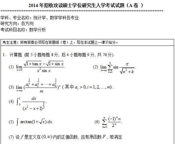 考试科目名称:数学分析