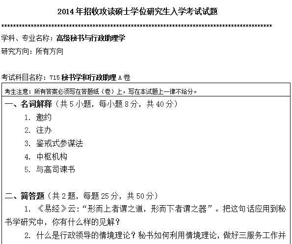 聚英考研信息网整理了2014年暨南大学715秘书学和行政管理考研真题,部分内容如下: