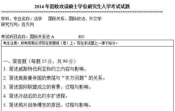 聚英考研信息网整理了2014年暨南大学805国际关系史考研真题,部分内容如下: