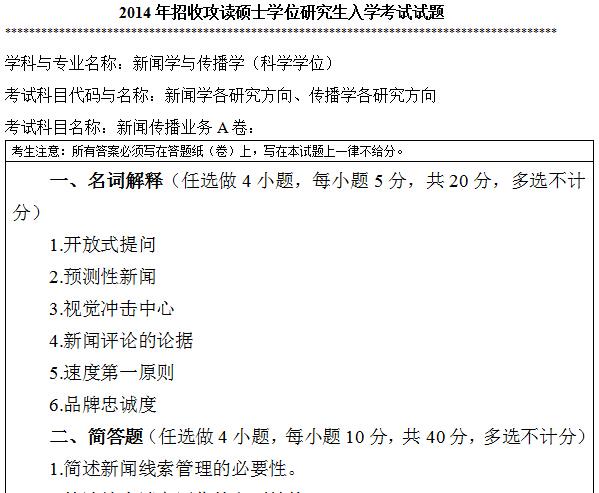 聚英考研信息网整理了2014年暨南大学809新闻传播业务考研真题,部分内容如下: