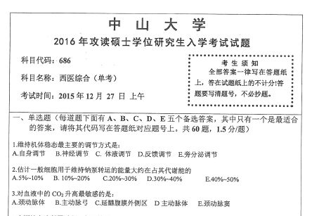 聚英考研信息网整理了2016年中山大学686西医综合(单考)攻读硕士学位研究生入学考试真题,部分内容如下: