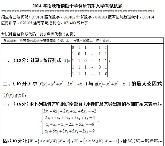 聚英考研信息网整理了2014年暨南大学810高等代数考研真题,部分内容如下: