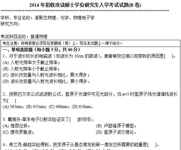 聚英考研信息网整理了2014年暨南大学811普通物理考研真题,部分内容如下: