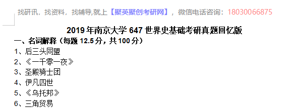 聚英南京大学考研网小编整理了2019年南京大学647世界史基础考研真题回忆版,部分内容如下: