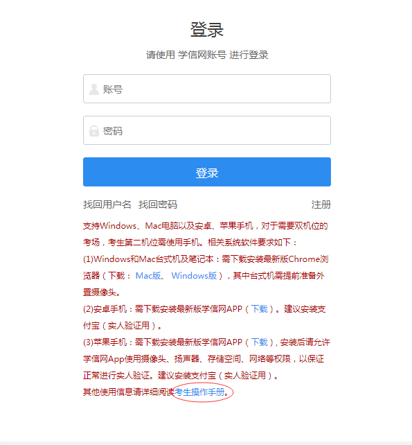 考生按照上述网址登录,根据界面提示下载,在图1中点击“考生操作手册”。