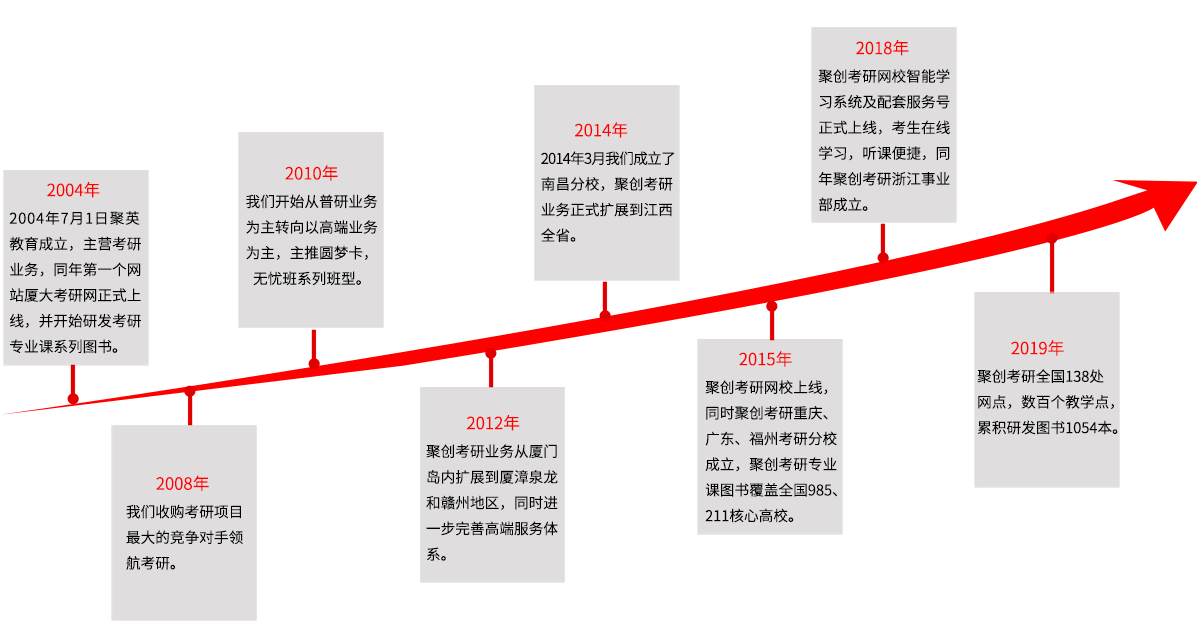 厦门市思明区聚创教育培训中心隶属于聚英教育集团,创立于2004年,是一家集教育培训、教育产品研发、图书出版发行于一体的综合性教育服务集团机构,旗下拥有聚创考研网、闽(敏)试教师考试、优公公考、宏医医考等子品牌。聚创考研作为其高端教育品牌 ,所研发的专业课考研复习全书、历年真题及解析、全真模拟题等考研专业课复习资料自04年发行以来,累计销量已达数十万册;聚创考研研发的圆梦卡小班授课高端辅导及一对一辅导的服务体系经过16年的努力耕耘,已成为业界服务的引导品牌。